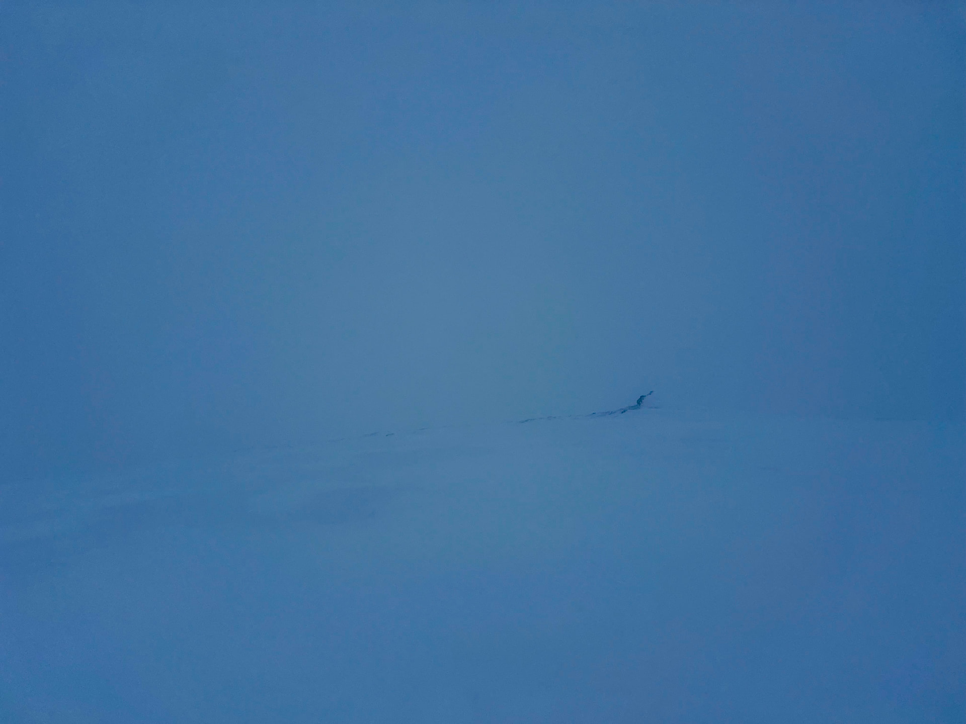 Once out of the shelter of the hill the wind was strong and the snow was on and off. Visibility was poor. By this time Fraser had been on his summit an hour, so once I was in the AZ I called him on 2m for our S2S. Andy was still calling, so he was another S2S.